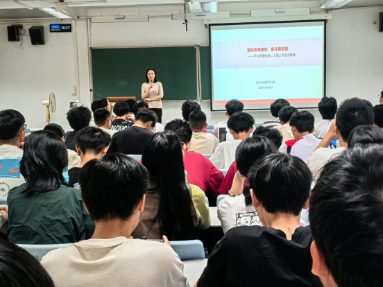 陈宝华书记以“强化改革意识,奋斗新征程——学习贯彻党的二十届三中全会精神”为题,与同学们共同回顾改革开放进程,阐明全会的重大时代意义和深远历史影响、我们党将改革开放进行到底的坚定决心。勉励同学们主动熟悉学科专业发展、人才培养特色,坚定理想信念,努力学习专业知识,勇于担当作为,新征程书写新时代青春篇章。