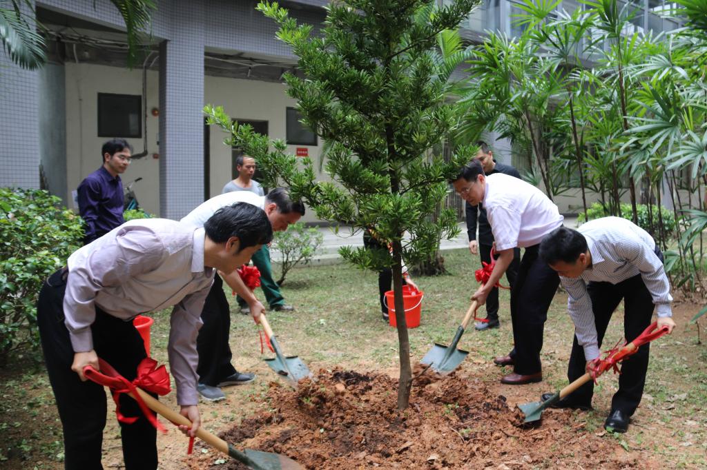 之后在校长、副校长、领导班子以及所有材料学院的教职工的见证下,材料学院完成了揭牌仪式,并且校长、副校长与院长一行人在学院的小花园种下了材料学院第一棵“材料之树”,寓意着材料学院立德树人的教育理念。