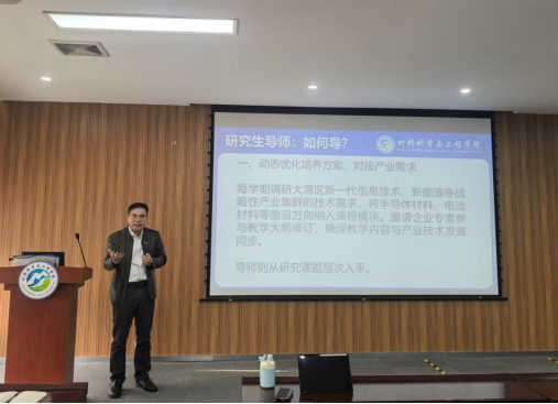 陈德良教授概括地介绍了学院情况,强调研究生培养重要性,并针对研究生培养质量提升的问题提出三大方向:一是动态优化培养方案,对接产业需求;导师则从研究课题层次入手。二是创新产学研协同机制,强化实践培养;导师则需考虑如何协同基础研究与应用研究的关系。三是深化过程评价改革,突出创新导向;导师则要完全放手,务必培养研究生独立解决复杂问题的创新能力。