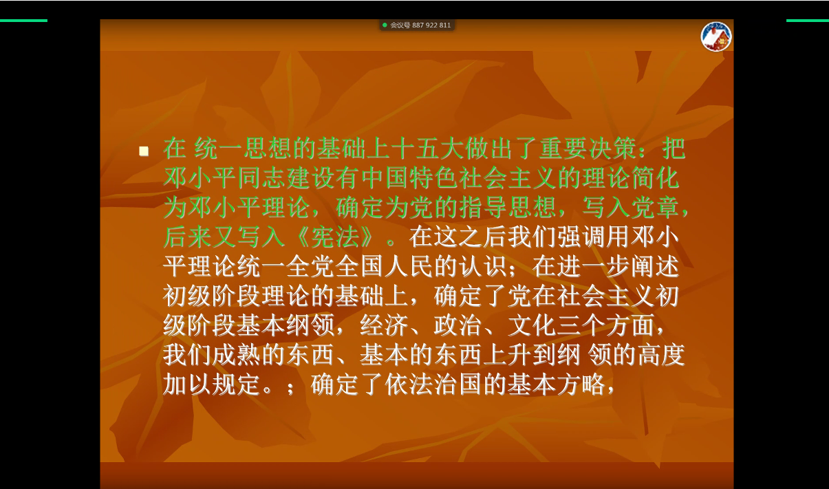 2020年4月2日下午14时30分,yl7703永利集团第三次党课在网络腾讯会议举行,由yl7703永利集团的文锦枢书记授课,课程主题为:党的发展历程和指导思想,25名积极分子准时参加党课。