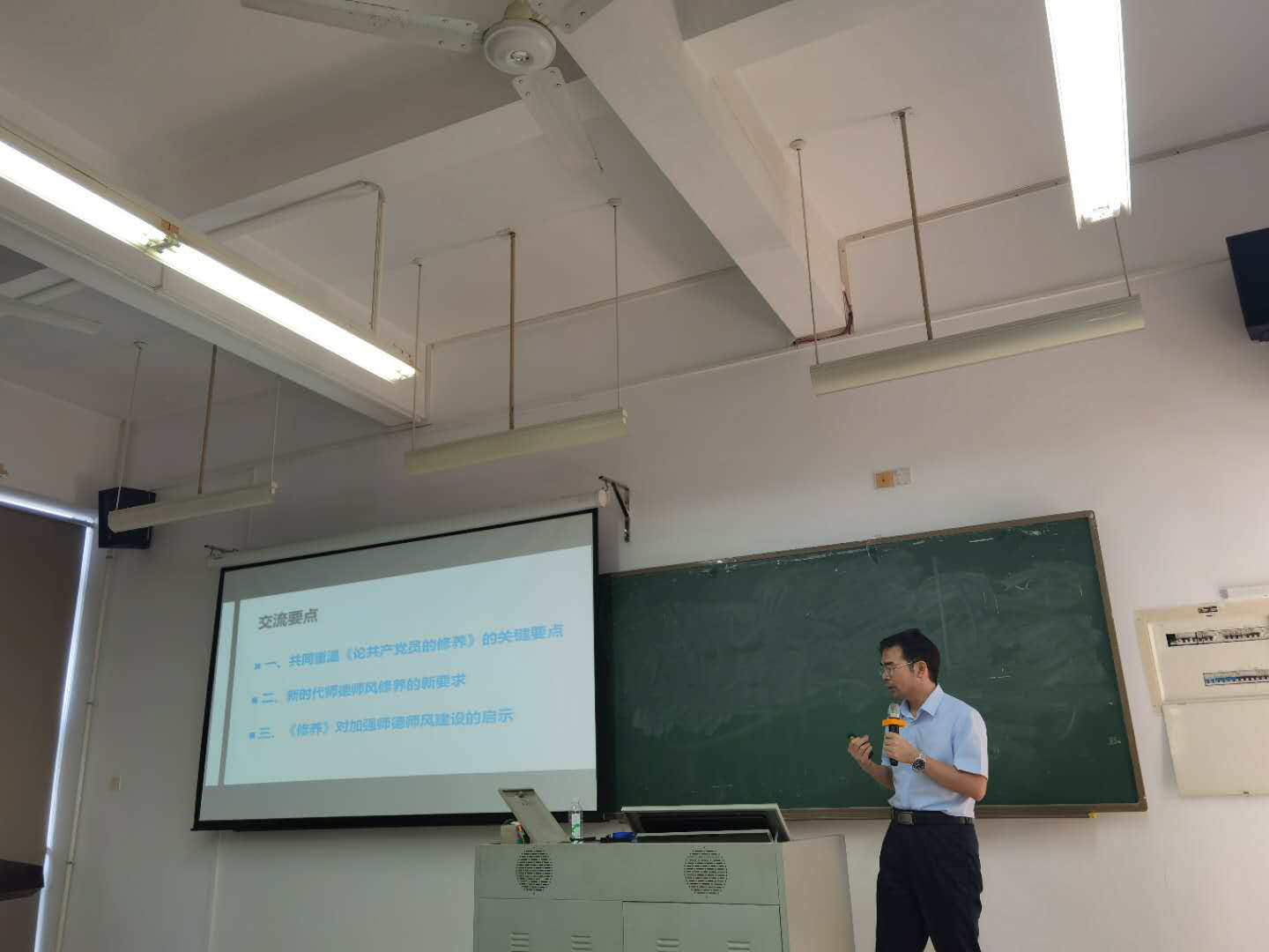 为落实党中央有关师德师风建设的指示精神,材料学院党委于2020年10月15日在4B212开展了以“重温《论共产党员的修养》,加强师德师风建设”为主题的师德师风建设专题报告会,会议由党委书记君光主持,学院副院长陈德良教授主讲,全体教职工参加会议。
