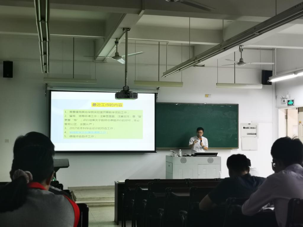 2020年10月22日星期四下午4点,我院本学期课程评估动员大会在材料学院阶梯教室212召开。学院教学副院长陈德良、系主任和全体任课老师出席了本次会议。会议由陈德良副院长主持。