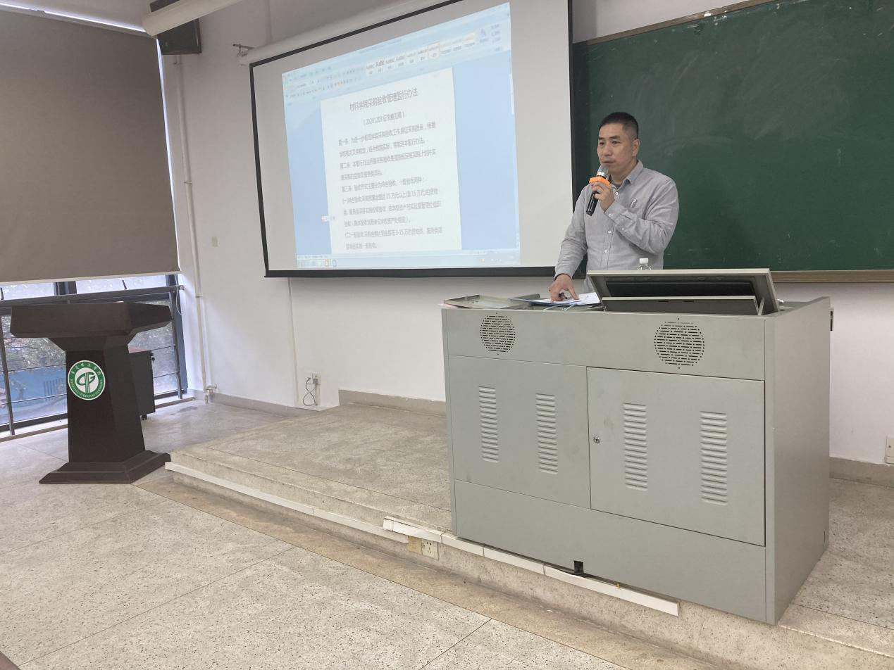 办公室卢副主任就《材料学院关于常态化疫情防控打卡制度》和《材料学院采购验收管理暂行办法》两份制度做了说明和解读并请各位老师就这两个规章制度提出相关建议和意见。