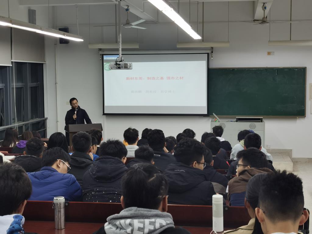 课上,郭老师从东莞发展新材料产业的时代背景、主体内容和现实路径这三个方面阐述了东莞发展新材料产业具备的天时地利人和的优势,包括区域位置优越、产业基础完善、政府支持等。郭老师先围绕材料产业概况、核心优势、发展趋势、产业布局,让同学们深刻认识到材料是制造业的根基,东莞作为一个制造业名城,需要全方位、多层次的实现技术创新,推动材料产业的转型升级和可持续发展。作为大学生的我们,利用好材料专业知识,可以借此良好发展平台展现自我,实现自我价值。其次郭老师结合相关政策和创新体制指出社会需要有高水平科研能力的人才,更需要能将科研理论转化为产业产能的人才,他强调同学们要抓住机遇把握机会努力提升自身综合能力。同时郭老师还分享了张立同院士的故事,勉励同学们要有刻苦钻研的学术精神,这样才能在材料领域成就一番事业。最后,郭老师对同学们说道:“时不我待、只争朝夕,希望同学们未来可期,不负韶华”。