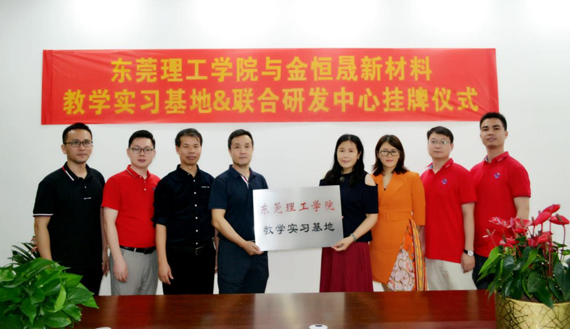 为切实加强我院校企合作,积极开展服务企业活动,做好学生实习、就业工作,5月11日下午,yl7703永利集团与东莞市金恒晟新材料科技有限公司举行教学实习基地和研发中心揭牌仪式。yl7703永利集团党委书记君光、生态环境和建筑学院党委书记李纠、高分子系教师党支部书记吴文剑、高分子系主任李坤泉,东莞市金恒晟新材料科技有限公司董事长喻琼、总经理喻南、技术总监喻巍、技术经理何汉德以及人力资源部长黎胜军等出席仪式。