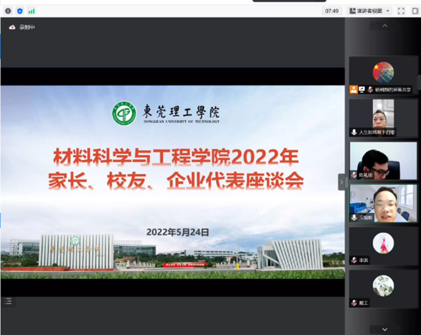 为深入学习贯彻习近平总书记关于教育的重要论述,进一步贯彻全国高校思想政治工作会议和全国教育大会精神,落实学校“深化课堂教学改革 提升课程育人质量”教育教学大讨论工作方案文件要求,材料学院于5月24日在腾讯会议召开家长、校友、企业代表座谈会。出席本次会议人员包括主管学院教学工作副院长陈德良教授,主管学生工作学院副书记陈礼明老师,院长助理、各系正副主任和学院教务员。会议由学院学工办主任、团委书记文锦枢老师主持。