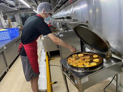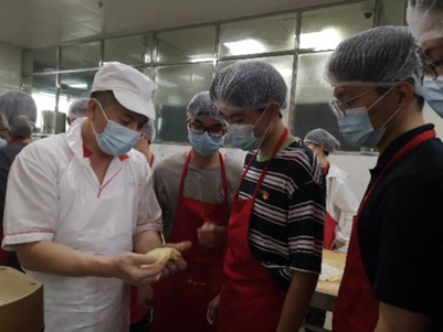 最后,两支部党员开展劳动教育主题党日活动——《后勤烘培小课堂》。学生党员们有序进入食堂作业间,跟着资深烘焙师傅学习制作老婆饼和南瓜饼,活动过程气氛十分活跃。活动结束后,师生们纷纷表示本次活动非常有意义,不仅学习了烘焙知识、感受到食品的来之不易,更体验了劳作的乐趣,是一次充实的课外实践活动!
