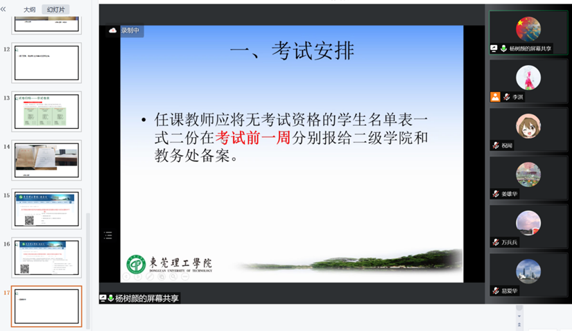 为加强我院学风建设,严肃考风考纪,确保学院教学质量,学院于6月13日晚通过腾讯会议召开线上期末考试工作动员会。学院教学副院长陈德良、学院全体专任教师和教学秘书等参加了会议。会议由院长助理杨树颜主持。