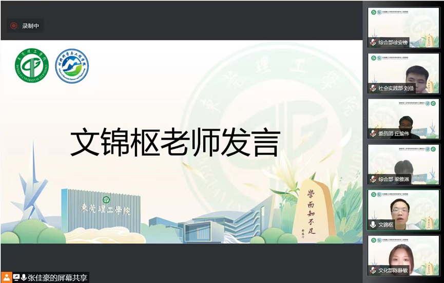 会议最后,文锦枢老师介绍省第十三次党代会精神的学习与应用。他强调举办本次学习会旨在帮助同学们把握提升专业能力,拓宽专业视野和培养管理思维,在学生工作中领悟做人做事的道理。他指出学生组织的同学们可以结合社会发展需求、行业发展形势、家庭客观条件和自身兴趣所在等因素,及早做好个人职业生涯发展规划,精准发力,把握美好的大学时光,为今后自身发展打下坚实基础。他呼吁作为学生组织的每一位成员都应该互帮互助,不断提升组织凝聚力、组成凝聚态,形成一个有“家”味道的学生组织,为建设新型高水平理工科大学贡献力量,以实际行动迎接党的二十大胜利召开。