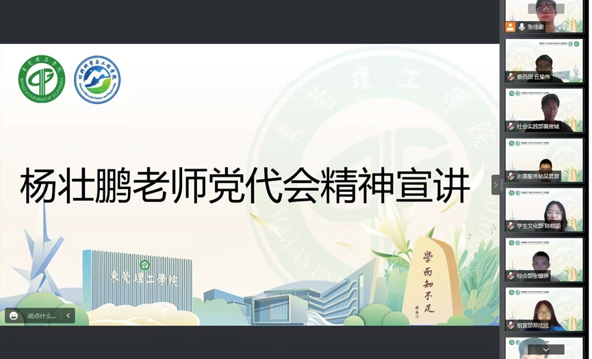 7月28日晚上,材料学院第四届学生组织在腾讯会议组织召开省第十三次党代会精神宣讲学习会。文锦枢老师、辅导员杨壮鹏和第四届学生组织全体成员出席了本次会议。