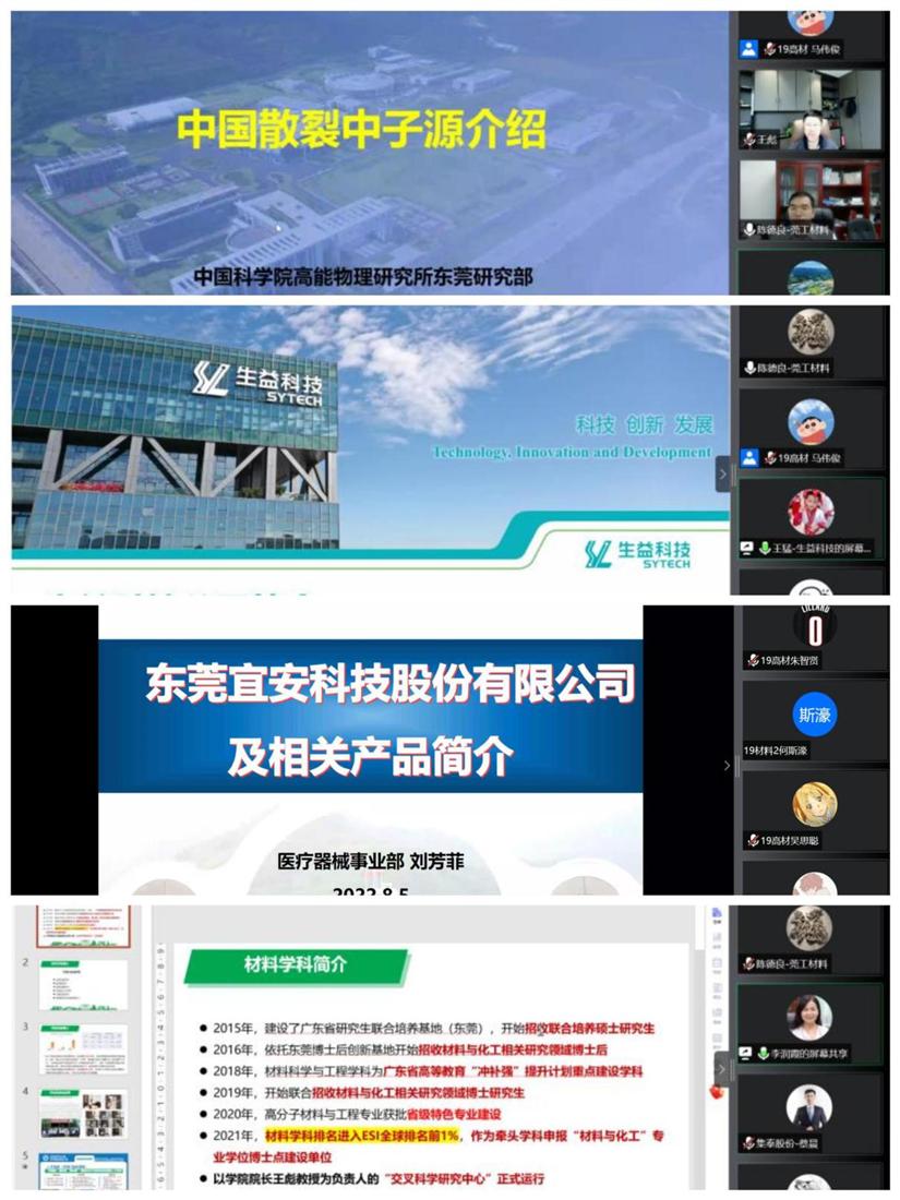 为全面深化产教融合、校企合作,加快人才培养结构调整,构建产教全方位全过程深度融合的协同育人长效机制,不断提升高校服务地方科技发展的能力和应用型人才培养的质量, 8月5日下午,材料学院通过腾讯会议举行新材料、中子科学与技术卓越工程师产教联合培养线上研讨会。会议特别邀请了中国科学院高能物理研究所东莞研究部副主任孙志嘉 、生益科技公司部长王猛、宜安科技公司副经理刘芳菲、集泰股份公司技术招聘主管蔡晨做宣讲。本次宣讲会议由学院教学副院长陈德良主持,院长王彪、科研副院长李润霞、党委副书记陈礼明、各系主任、学科带头人及和材料学院2019级全体学生出席了会议。