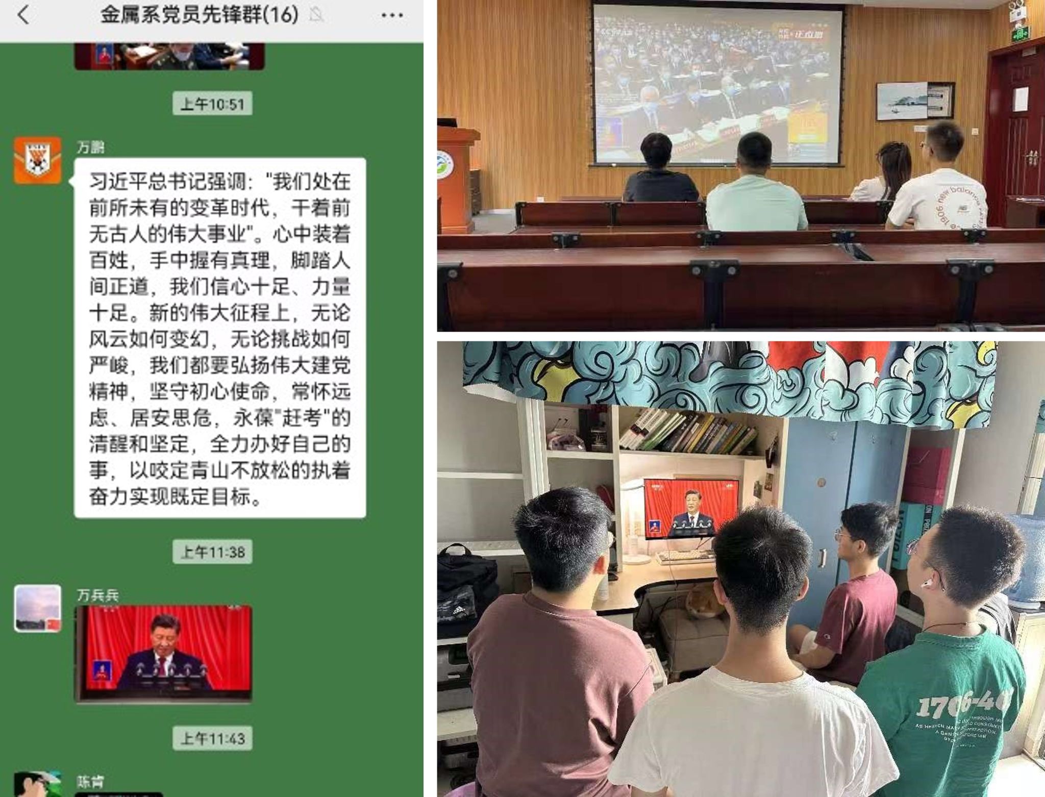 材料学院党政班子成员在材料学院4B410集中收看,并开展了座谈学习交流。