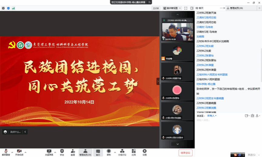 召集班长团支书开展“民族团结进校园,同心共筑莞工梦”主题线上会议