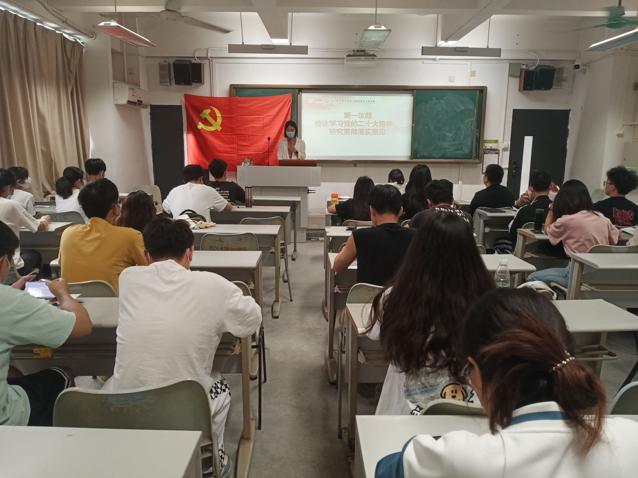 首先各支部书记分别领学了习近平总书记在中国共产党第二十次全国代表大会上的重要讲话精神。与会者深入学习探讨了党的二十大精神,主要从过去五年的工作和新时代十年的伟大变革、新时代新征程中国共产党的使命任务等方面,深入浅出地对党的二十大报告精神进行了解读。学生支部郑锦龙等4名学生代表就本次学习积极发言,表示广大学生党员要紧跟党的步伐,高举中国特色社会主义伟大旗帜,全面贯彻新时代中国特色社会主义思想,弘扬伟大建党精神,自信自强、守正创新,踔厉奋发、勇毅前行,为全面建设社会主义现代化国家、全面推进中华民族伟大复兴而团结奋斗。