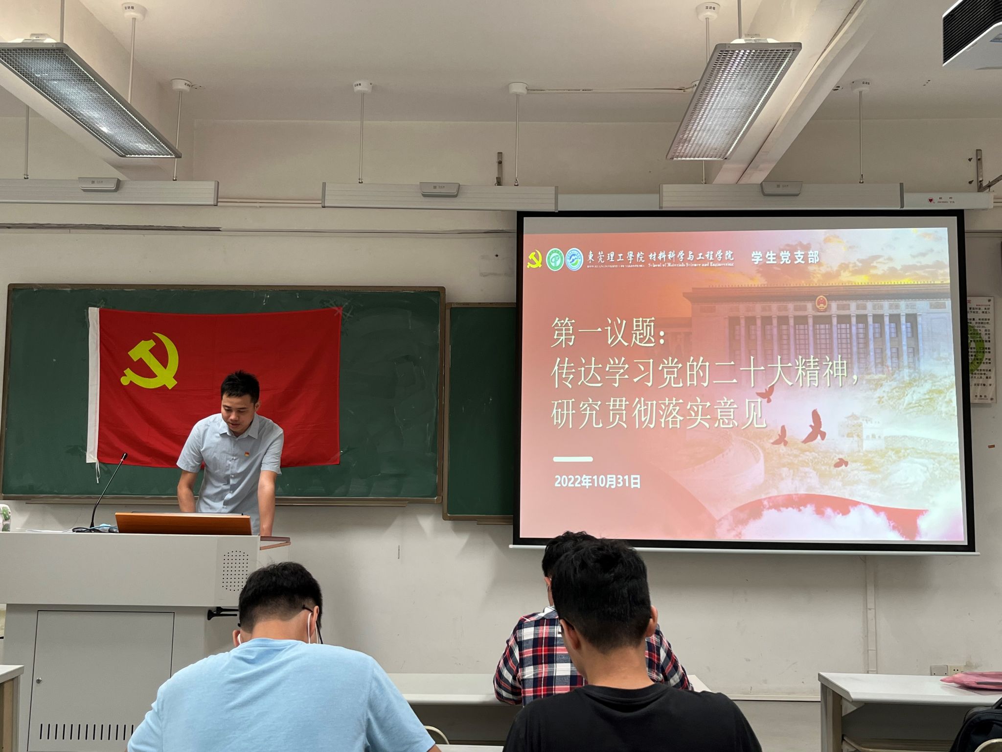 2022年10月31日,材料学院学生第一、第二支部分别在教学楼6A308、6B302教室召开支部大会,学习党的二十大精神,研究贯彻落实意见,并讨论陈舒鑫等16名同志加入中国共产党事宜。会议由各支部书记主持。