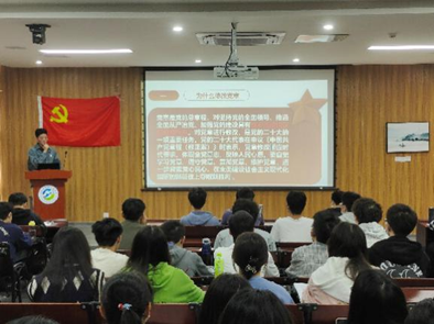为深入学习贯彻习近平新时代中国特色社会主义思想和党的二十大精神,丰富党员活动内容及形式,激发支部党建工作新活力,11月5日,材料学院学生党支部在材料楼4B212会议室开展“微党课”系列活动第一讲。 “微党课”第一讲宣讲团由林洪鑫等10位党员代表组成,第57期发展对象参与学习。