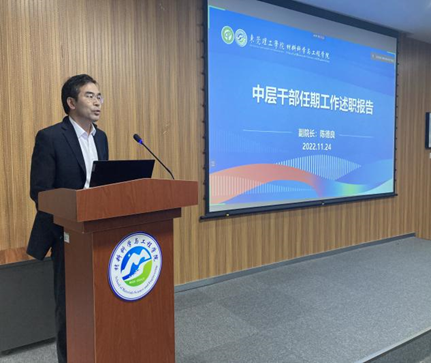 11月24日,材料学院于材料楼4B212会议室召开领导班子任期考核暨2022年中层干部年度考核述职评议会议。校长马宏伟、学校述职评议工作组成员王博等出席会议,学院党委书记君光同志主持,学院全体教职工和学生代表参加了会议。