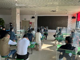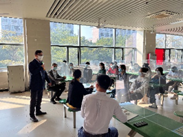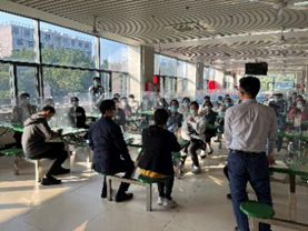 2022年12月8日下午,材料学院学生第一支部与后勤党总支第一党支部围绕“学习党的二十大精神,展劳动育人风范”主题在第三饭堂开展支部结对共建活动。材料学院党委副书记陈礼明、后勤党总支副书记袁荫贞、后勤办公室副主任王平、材料学院学生党支部书记和学生党员及部分第三饭堂职工参与本次活动。活动由后勤第一党支部书记卢健群主持。