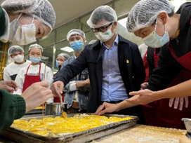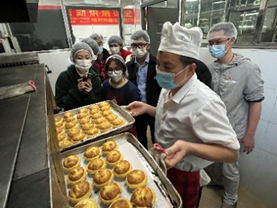 活动第三环节,两支部党员开展“学党的二十大精神,展劳动育人风范”主题党日活动——《后勤烘培课堂》,学生党员在烘焙师傅的指导下学习制作椰蓉蛋挞,活动中气氛温馨活跃。活动结束后,党员师生纷纷表示本次共建活动非常有温度、有特色、接地气,活动烧旺了党内政治生活炉火,有回味更有“党味”。