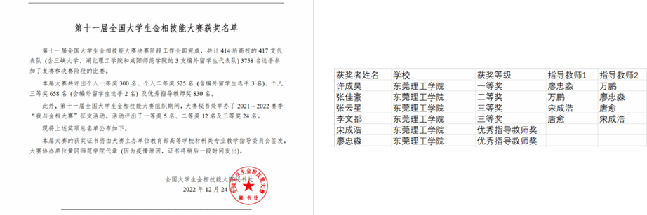 近日,第十一届全国大学生金相技能大赛公布获奖名单,由材料学院20级金属材料工程专业许成昊、张佳豪以及机械工程学院张云星、李文都等同学组成的代表队在与国内众多名校学子同台竞技后脱颖而出,取得4项国家级奖项。其中许成昊荣获全国一等奖,张佳豪荣获全国二等奖,张云星、李文都荣获全国三等奖,廖忠淼、宋成浩荣获优秀指导老师,取得了我校自参加该项赛事以来的历史最好成绩。