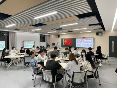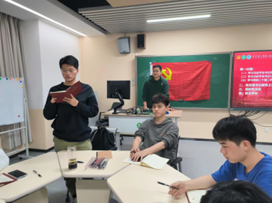 会议第一项,支部书记领学习近平总书记在学习贯彻党的二十大精神研讨班开班式上的重要讲话精神,会中强调党员同志要紧跟习近平总书记的教导,正确理解中国式现代化的深刻内涵。随后,对习近平总书记2月16日在中央政治局常委会会议上的重要讲话精进行学习,感悟党中央带领全党全军全国各族人民在抗疫、防疫历程中的强烈的历史担当和强大的战略定力。随后进行党的二十届二中全会精神学习,会议强调要深入学习贯彻党的二十大精神。蔡婉仪等学生党员同志针对议题作出了发言,表明学生党员须将“知行合一”贯穿始终,着眼常态长效,一以贯之、久久为功,一锤接着一锤敲,一环接着一环抓,在日积月累中加深领悟、提高成效。