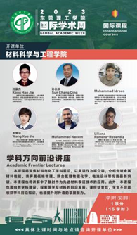 11月27日,2023年永利集团国际学术周在正式启动。材料学院积极响应学术周活动,邀请了6位外籍教师,分别是马来西亚籍的江豪杰博士(东莞理工特聘副研究员)、新加坡籍的孙长庆博士(东莞理工校长特聘教授)、巴基斯坦的Muhammad Idress博士(东莞理工与中国科学技术大学联合培养博士后)、新加坡籍的王雪洁博士(中山大学附属第一医院临床型博士后)、巴基斯坦籍的Muhammad Naeem博士(伯明翰大学资深研究员)、墨西哥籍的Liliana Romero-Resendiz博士(墨西哥国立自治大学助理教授),为材料与化工学位点研究生讲授《学科方向前沿讲座》课程。