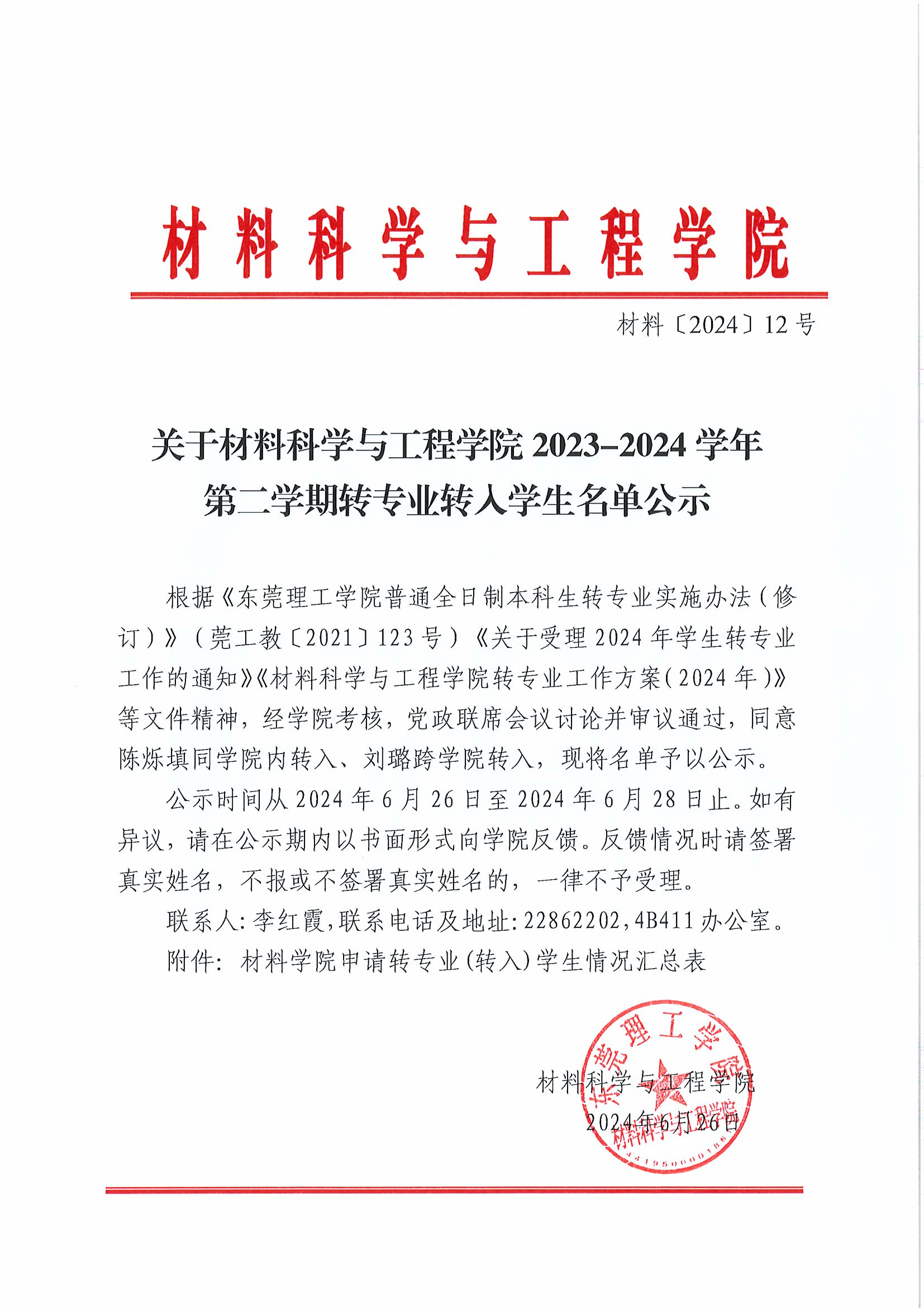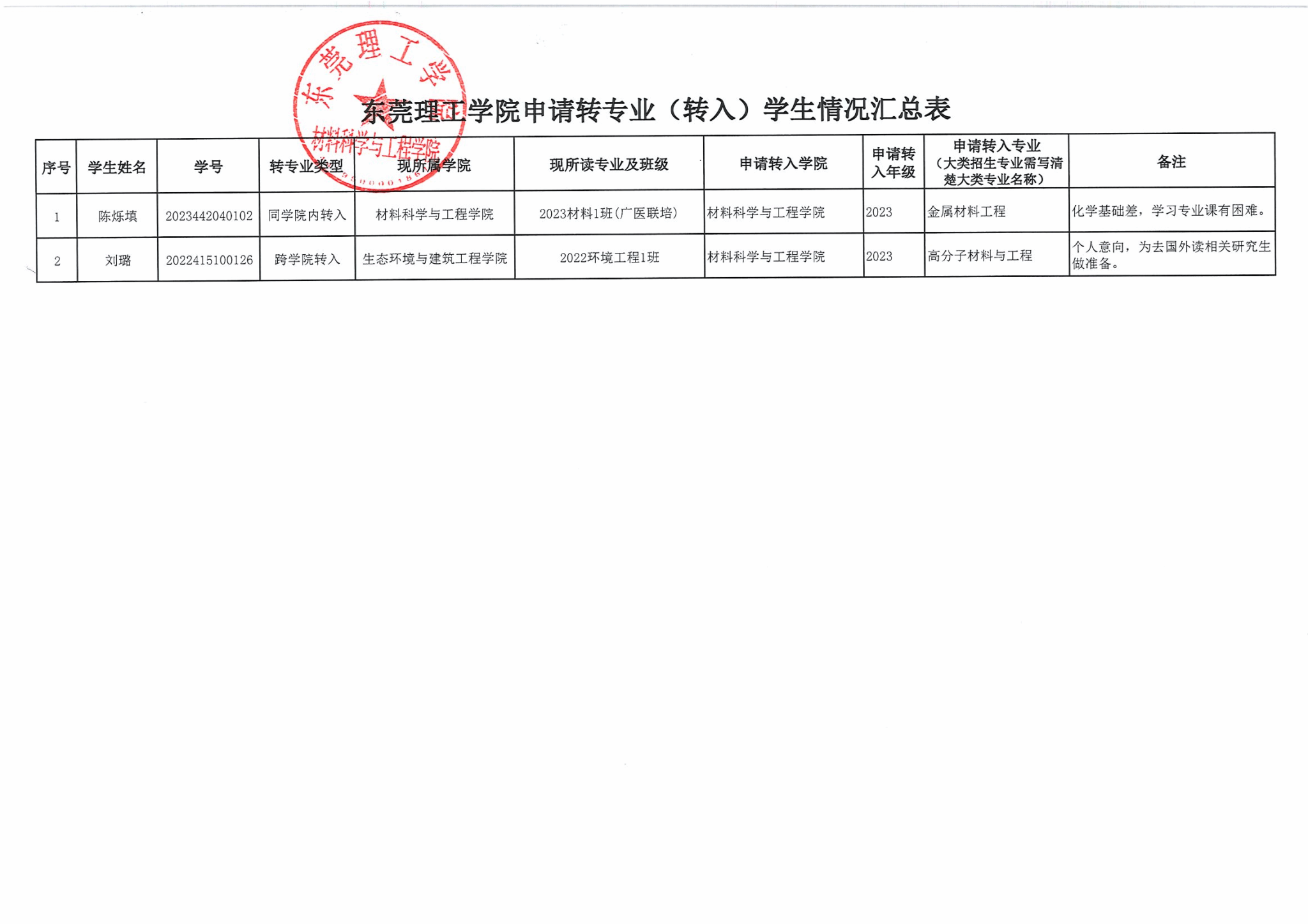 yl7703永利集团2023-2024学年第二学期转专业转入学生名单公示