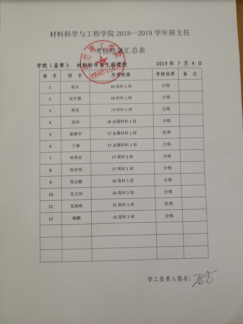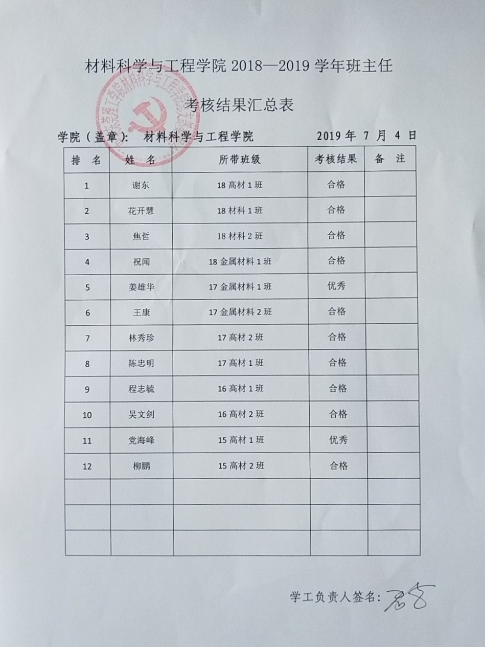yl7703永利集团2018-2019学年班主任考核结果汇总表