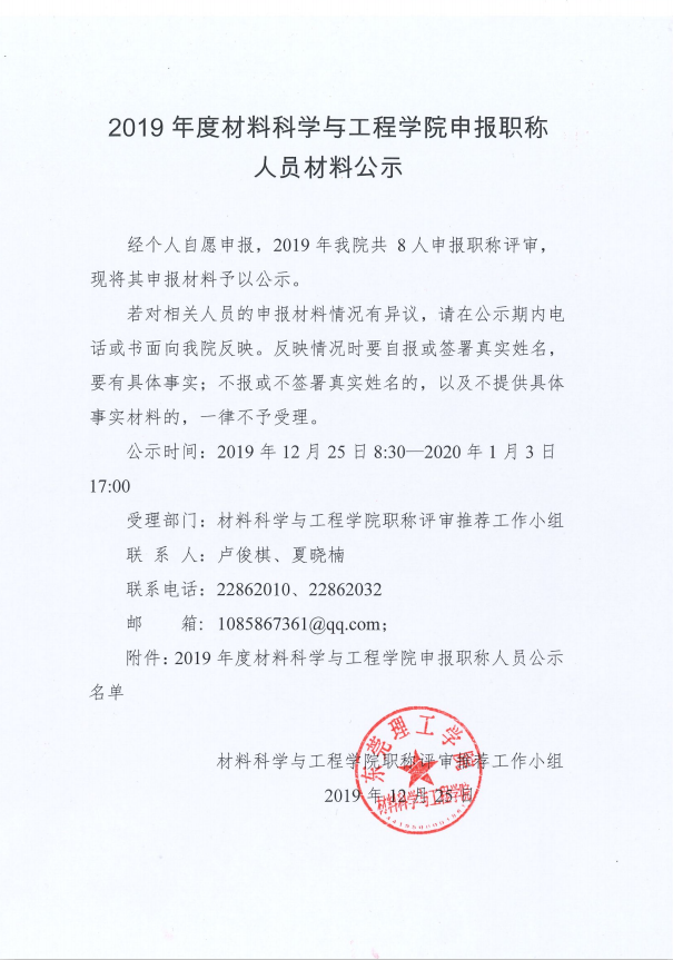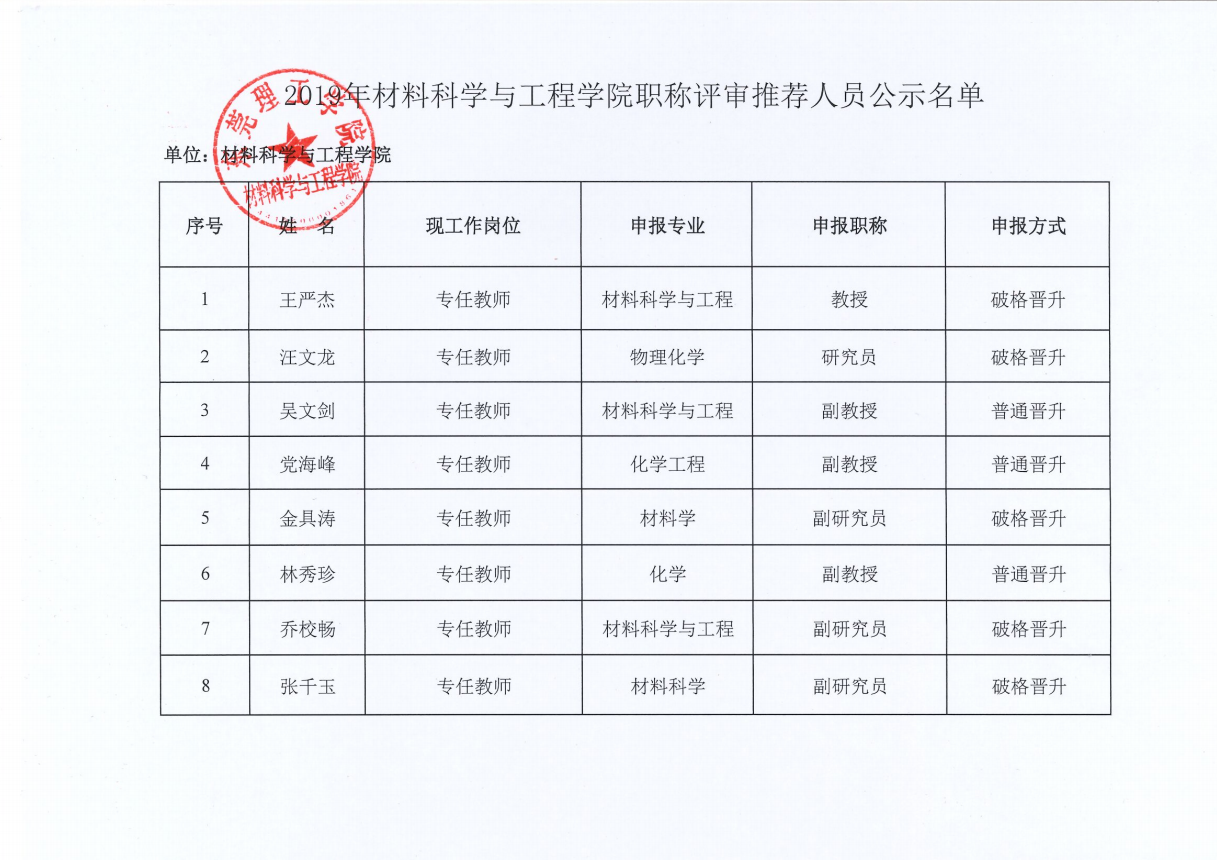 2019年度yl7703永利集团申报职称人员材料公示及职称评审推荐人员公示名单