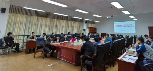 20201314:30,材料学院在材料楼306会议室召开了“yl7703永利集团2019-2020学年第一学期教学总结会”。总结会由学院教学副院长陈德良教授主持,学院特聘二级教授刘治猛教授、教学督导组组长田君教授、王小霞教授和钟赤锋副教授,系主任吴文剑博士、易爱华副研究员和党海峰博士,实验室主任刘啸天博士,院长助理杨树颜副研究员以及全体专任教师参加了会议。