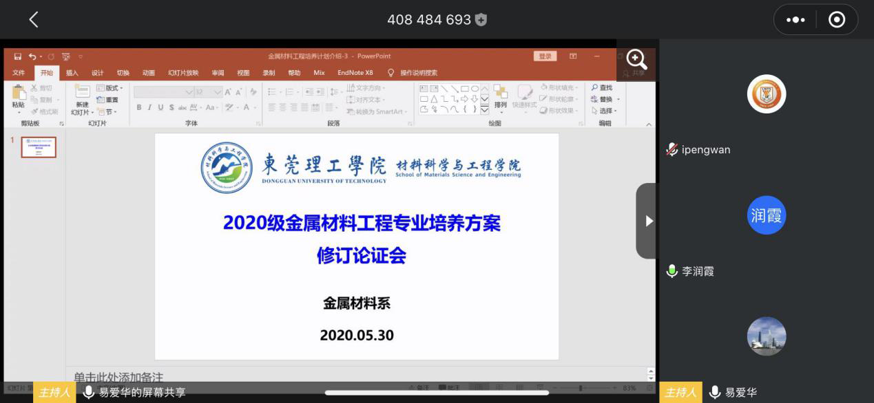 2020年5月30日下午,材料学院金属材料系开展“落实‘三全育人’建设一流本科”教育教学大讨论—人才培养方案修订研讨会。研讨会由易爱华支部书记主持,邀请了材料学院分管教学和科研的陈德良副院长和李润霞副院长,金属材料系王康、陈肯、万鹏、祝闻老师参加。活动就金属材料系2020级学生人才培养方案的制定展开讨论,各位老师纷纷发表意见,并提了很多建议,李润霞副院长也就金属材料系的课程设置和特色做了分析和建议,最后陈德良副院长从人才培养方案这个“纲”出发,针对实际的课程内容、课程名称以及培养目标,能力体系的建构做了总结发言。此次活动的开展主要为了更有力的推动金属材料系的人才培养,突出特色,为推动专业和学院的建设更上台阶。