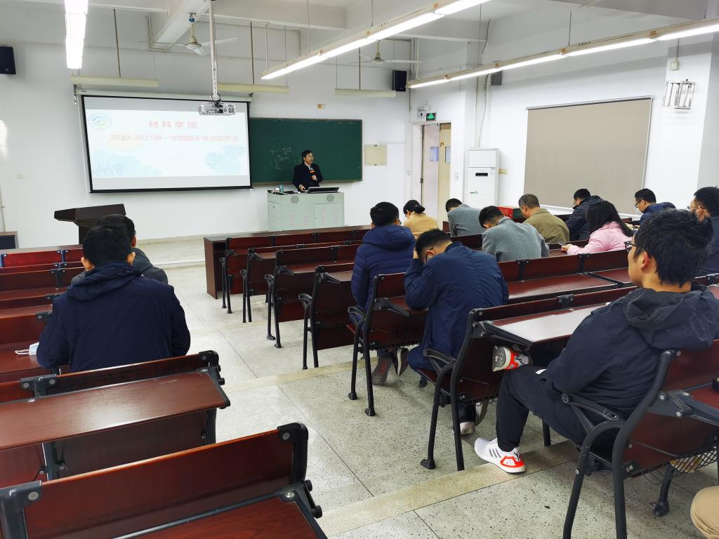 为加强我院本科学风建设、严肃学院考风考纪,确保教学工作的顺利进行,我院于12月31日上午在材料学院4B212召开了2020-2021学年第一学期期末考试动员会。会议由我院教学副院长陈德良教授主持。学院全体专任教师出席了本次会议。