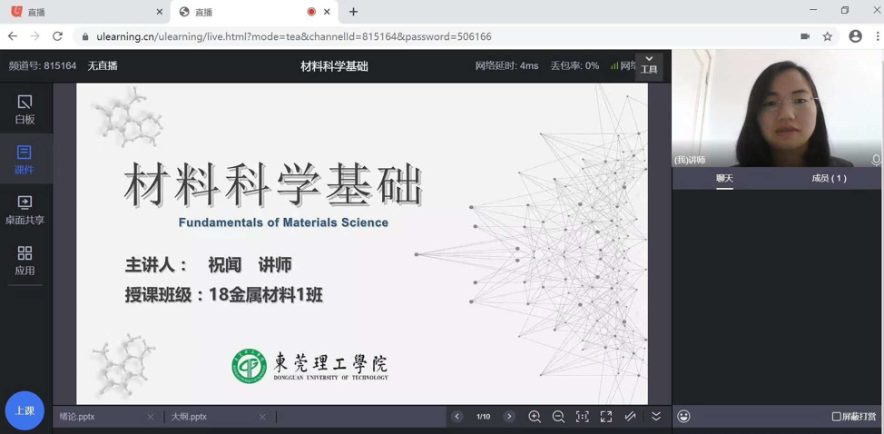 3月2日,是学校正式启动2020年春季学期线上网络教学开学的的第一天。今天我院共有三门课程在网上开课,分别是田君教授为2018金属材料1班(检测工程)同学讲授的《机械设计基础B》课程,钟赤锋副教授、王涛博士为2018材料科学1班和2018材料科学2班同学讲授的《材料科学基础》课程。