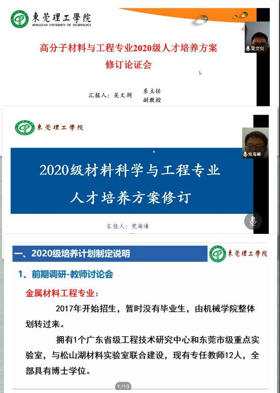 为集思广益,进一步优化我院2020级本科生人才培养方案,切实提高我院本科生人才培养质量,我院于5月21日下午在线上召开了“2020级本科生人才培养方案修订”论证会。学院全体教职工出席会议,同时邀请了郑州大学汤克勇教授,东华大学张青红教授,广东银禧科技有限公司吴昊经理以及本校闫石教授、黄辉宇博士等校内外专家参加。会议由分管教学副院长陈德良教授主持。