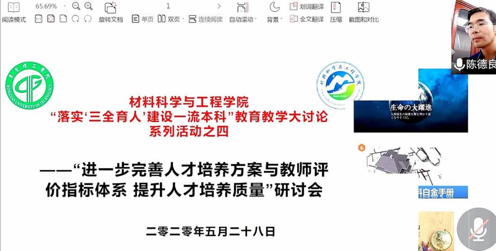 yl7703永利集团于5月28日14:30召开了“进一步完善人才培养方案与教师评价指标体系,提升人才培养质量”——“落实‘三全育人’建设一流本科”教育教学大讨论系列活动之四。会议由分管教学副院长陈德良教授主持,全体专任教师出席了本次会议。