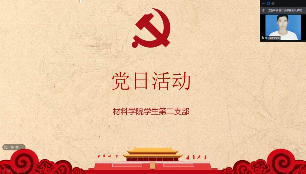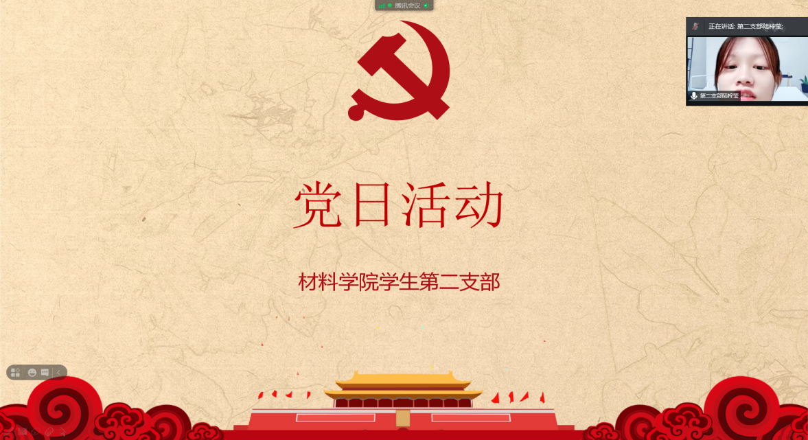 庆建党百年华诞,深入学习贯彻习近平总书记学党史动员大会中重要讲话精神。yl7703永利集团学生第二支部党员于2021年6月17日线上举行了党日活动。学生第二党支部书记陈敏同志,学工办主任文锦枢,组织员徐向学及全体学生党员出席会议。