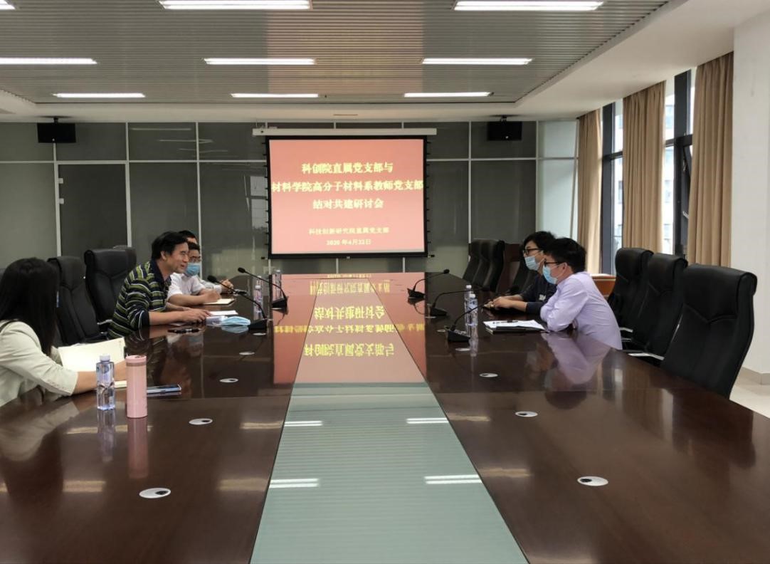 按照学校党委统一部署要求,在前期沟通的基础上,4月22日下午,yl7703永利集团党委副书记陈礼明,高分子材料与工程系教师党支部书记、系主任吴文剑到访科技创新研究院,就yl7703永利集团高分子材料与工程系教师党支部与科技创新研究院直属党支部结对共建问题进行商讨。科技创新研究院直属党支部书记、常务副院长周梓荣,资产经营有限公司董事长吴运建,科技创新研究院副院长夏能礼等支部成员参加了座谈。