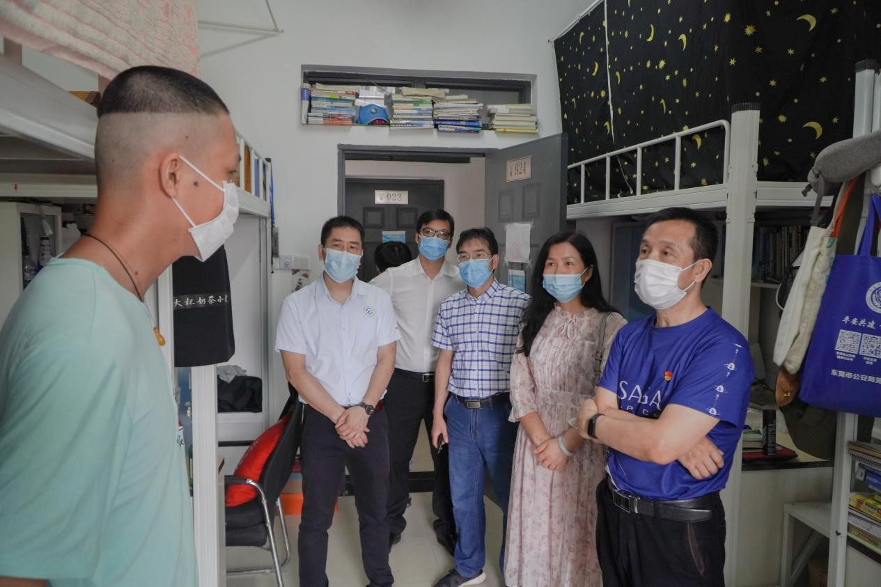 学院领导又到学生宿舍了解同学们的生活、工作及学习情况,君光书记代表学院欢迎返校学子归来,君书记贴心叮嘱同学们,在校这段时间要做好个人防护,认真完成各项工作,多跟家里保持好联系,遇到困难要及时向学院反映。得知大四的蔡智祥同学还没有落实就业单位,陈德良副院长立刻加了蔡同学的微信,为他推荐就业单位。陈礼明副书记还语重心长的提醒蔡同学,要把握好人生的关键点,做好人生重要选择。