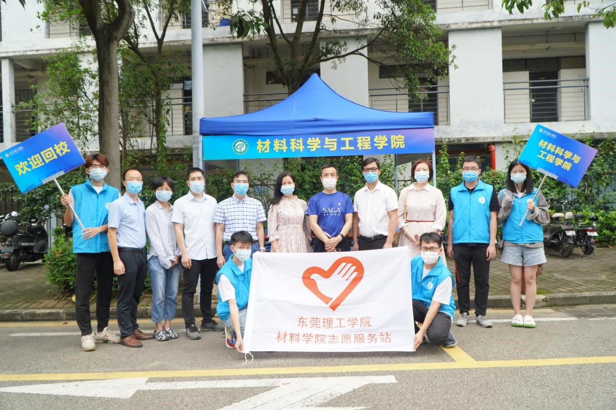 旭日初升,院领导君光、陈德良、李润霞、陈礼明、卢俊棋、文锦枢等就来到学生返校报到点,和部分教师及志愿者同学一起,迎接第二批材料学子返校。