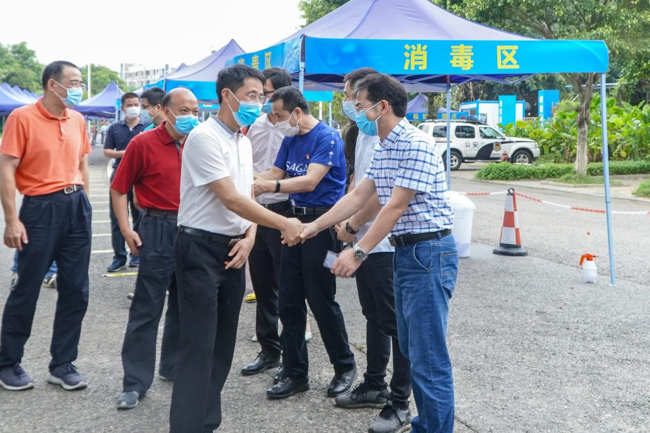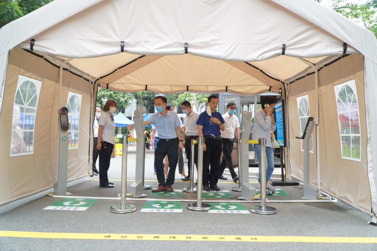 随后,学院领导前往东门迎接材料学子返校。在东门外,校党委书记成洪波亲切鼓励我们,要坚定信念,始终把师生生命健康放在第一位,一切工作都围绕这个中心来开展,确保学生返校工作不出现任何瑕疵,确保所有返校师生的生命健康安全。