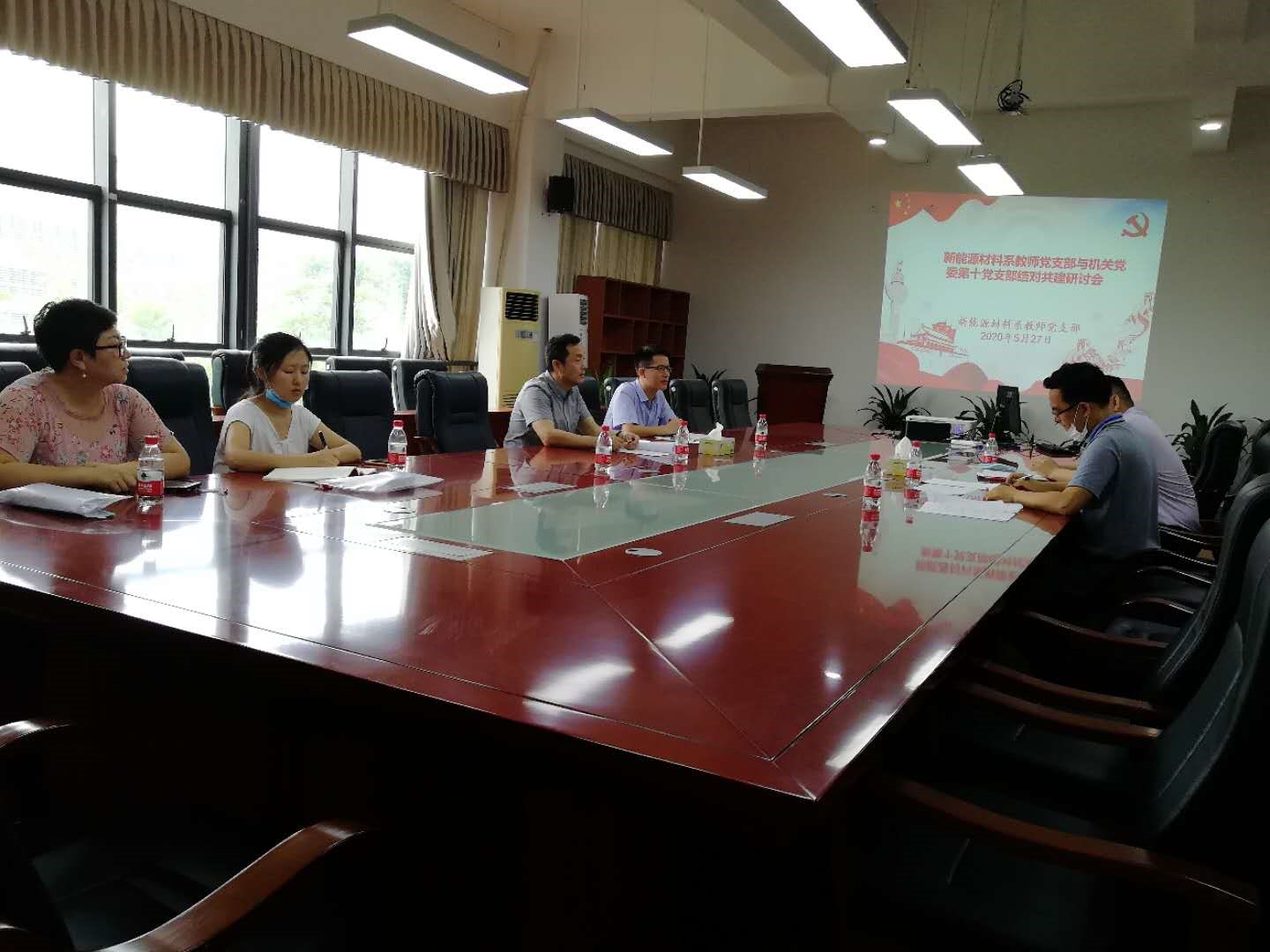 2020527日,新能源材料系教师党支部支委会和机关党委第十党支部支委会在材料学院会议室召开了结对共建座谈会,新能源系党支部书记党海峰、组织委员刘丹、宣传委员乔校畅,机关十支部组织委员江志东、宣传委员张兆军参加会议。