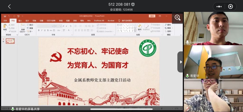 6月29日,金属材料系教师党支部开展在线“不忘初心、牢记使命,为党育人、为国育才”专题组织生活会,全体教师党员参会,会议由支部书记易爱华主持,yl7703永利集团副院长李润霞教授出席了会议。