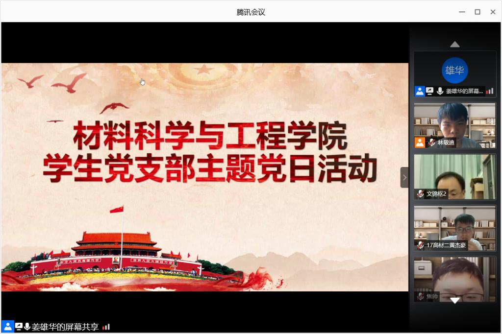 2020年7月9日,材料学院学生党支部在腾讯会议开展了线上学生党支部七月党日活动。