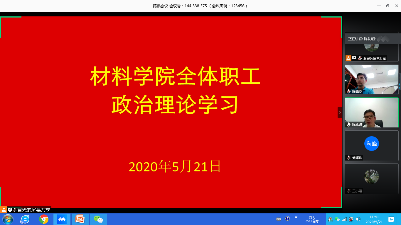 2020年5月21日下午,yl7703永利集团党委采取网络会议开展第二次全体教职工政治理论学习。学习会由党委书记君光主持,共54名教职工参会。