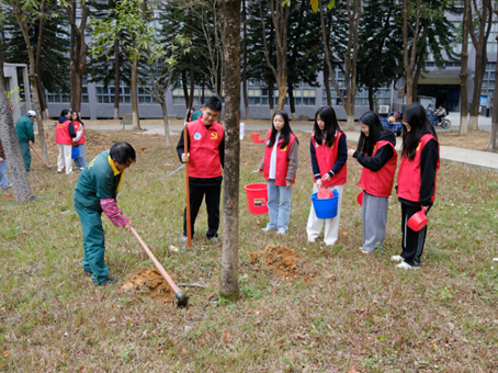 全体师生在现场工作人员的带领下,倾力投入到桃李园和校友林的绿化工作中,开展了除草、施肥、修枝和园林设施维护等工作,用实际行动诠释了师生党员的责任担当精神。