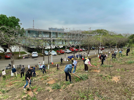 为深化绿美莞邑建设,提升师生党员参与生态文明建设的思想自觉和行动自觉,3月7日,材料学院党委、总务后勤党委在松山湖校区桃李园和校友林共同组织开展“绿美莞邑,党员先行”主题党日活动,材料学院党委书记陈宝华、总务后勤党委副书记袁荫贞、材料科学与工程系、金属材料与工程系和高分子材料与工程系教师党员代表以及学生支部师生参加了活动。