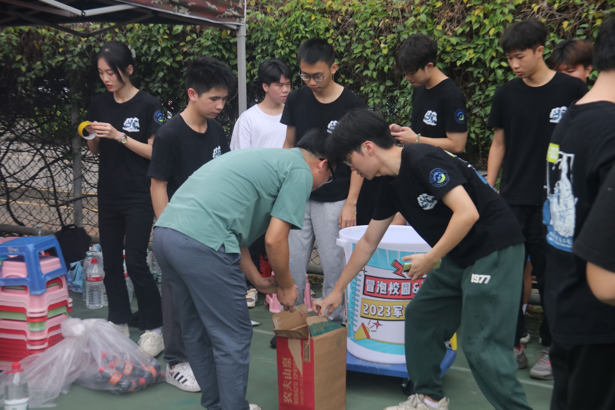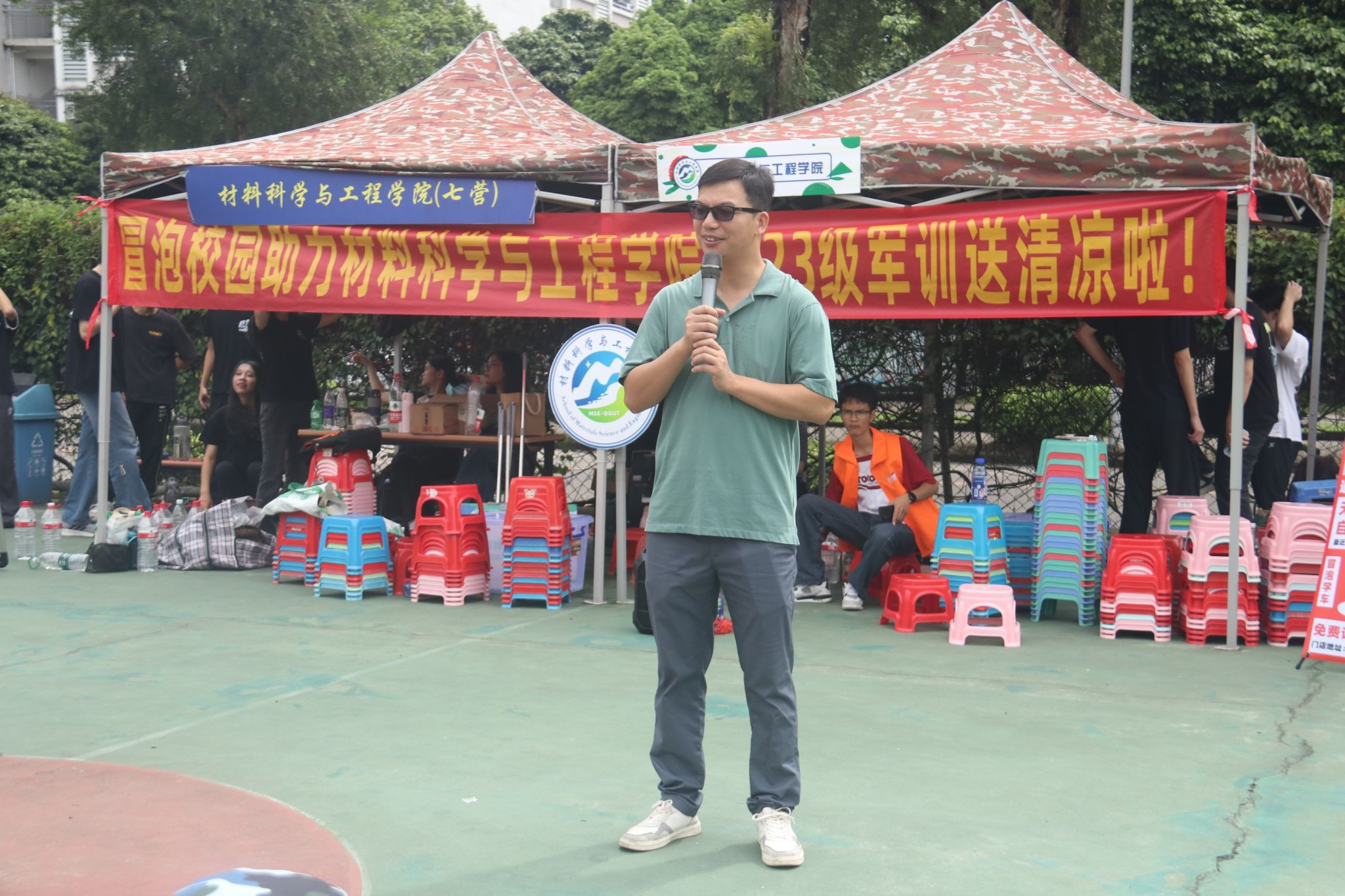 为了进一步提升学院师生党员干事创业的精气神,推动入党宣传工作的创新发展,材料学院学生第一、第二支部积极发挥党建带团建作用,于9月16日上午在松山湖校区七营十七连训练场地,以送清凉的形式为材料学院新生进行了慰问和入党宣传,活动由材料学院党委副书记陈礼明主持。