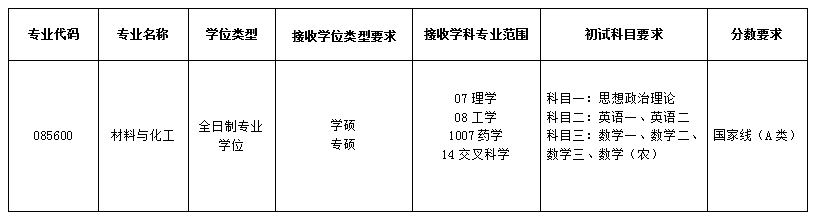 (三) 第一志愿报考专业与本学位点材料与化工专业(专业代码:085600)相同相近或初试科目与调入专业初试科目相同相近。