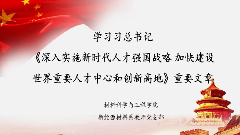 新能源材料系教师党支部组织学习《深入实施新时代人才强国战略加快建设世界重要人才中心和创新高地》