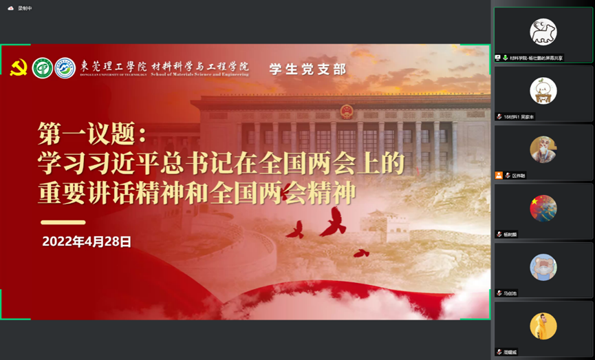 材料学院学生党支部集体学习习近平总书记在全国两会期间的重要讲话精神和全国两会精神